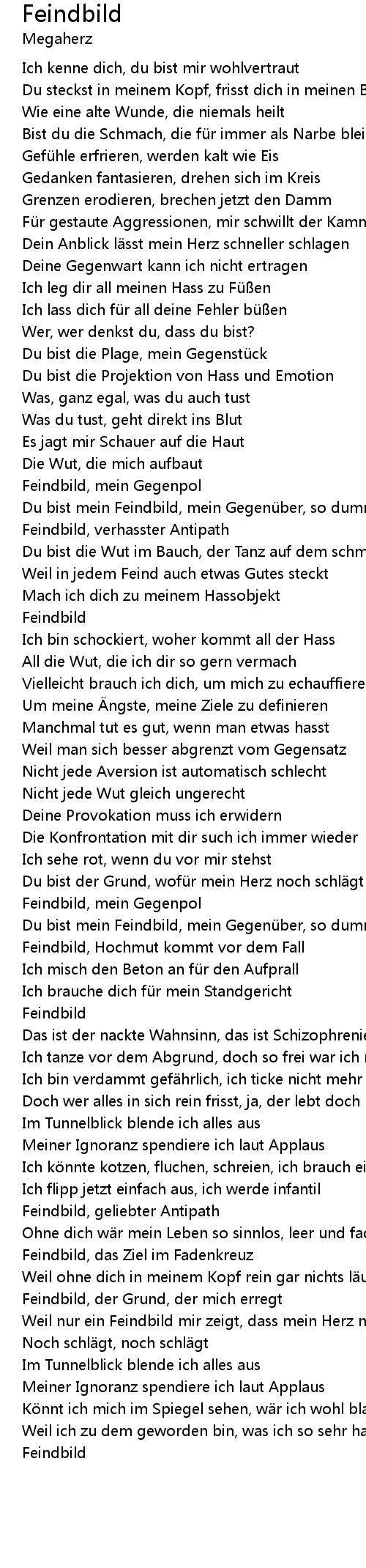 | Weil nur ein Feindbild mir zeigt, dass mein Herz noch schlägt | |