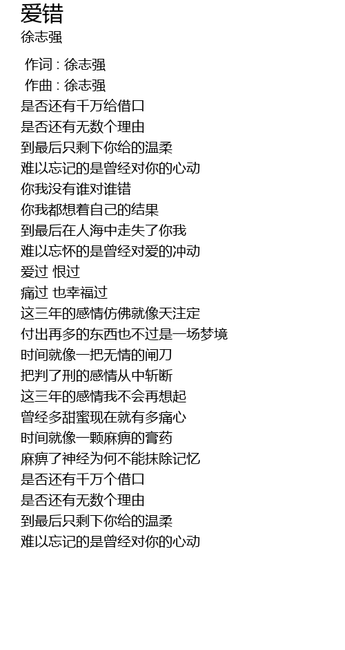 | [00:00.000] | 作词 : 徐志强 |