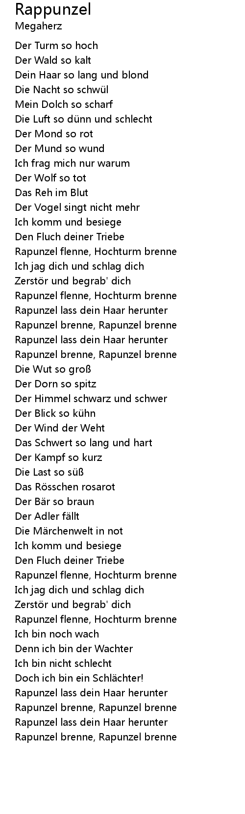 | Rapunzel flenne, Hochturm brenne | |