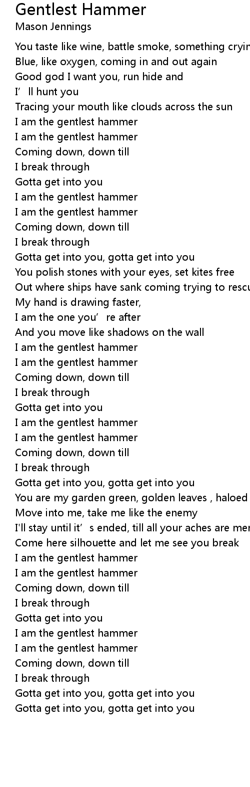 | I' ll stay until it' s ended, till all your aches are mended | |