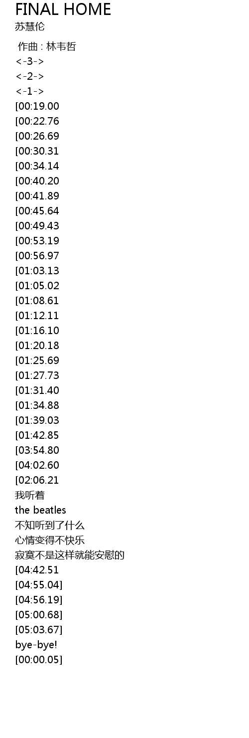 | [04:06.44][04:02.60][02:01.30][01:57.15] | final home |