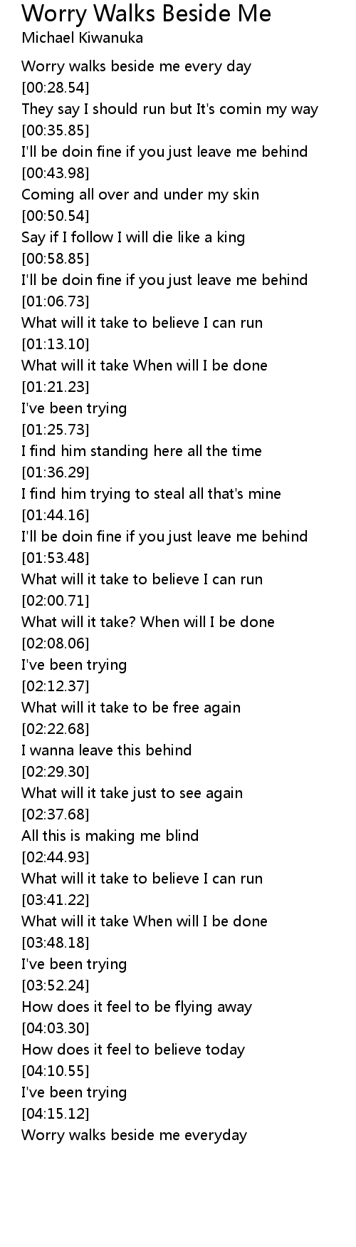 Worry walks beside me everyday |
