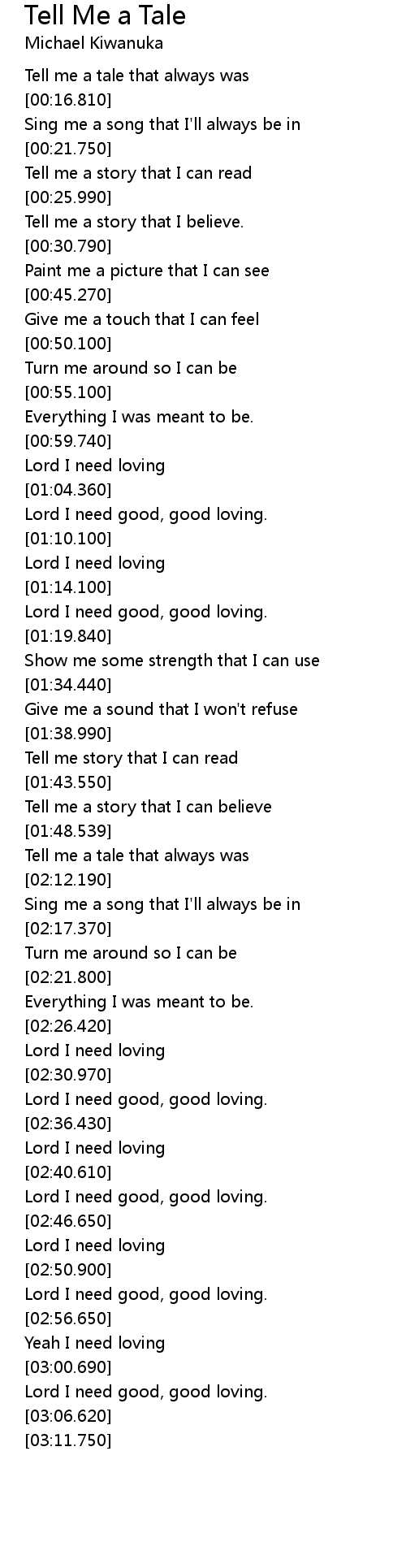 | [00:18.930] | Sing me a song that I' ll always be in |