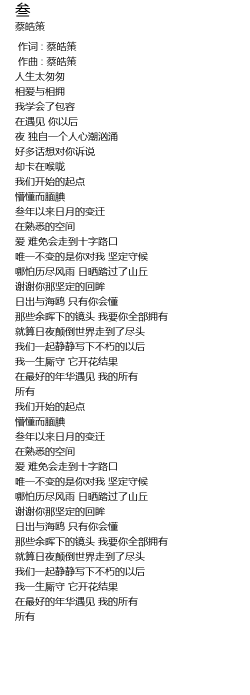 | [04:22.056] | 我一生厮守 它开花结果 |