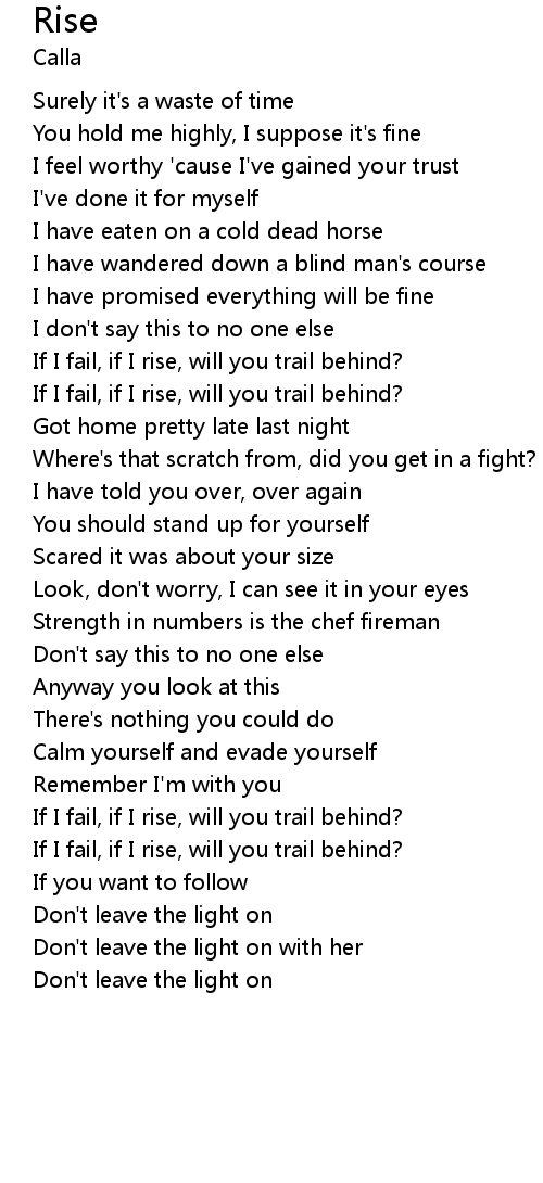 If I fail, if I rise, will you trail behind? |