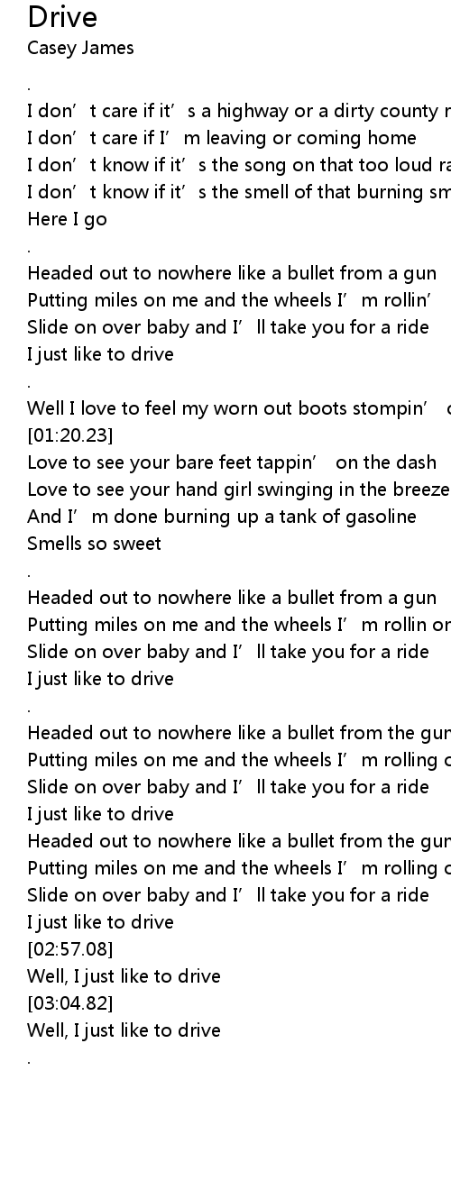 | [00:31.58] | I don’t care if it’s a highway or a dirty county road |