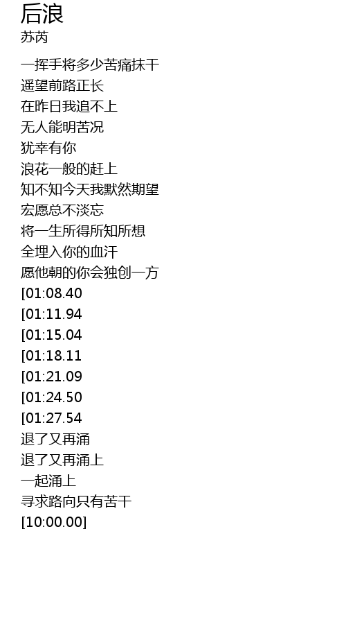 | [01:49.79][01:24.50] | hái wǒ hòu làng chéng jì hòu làng |