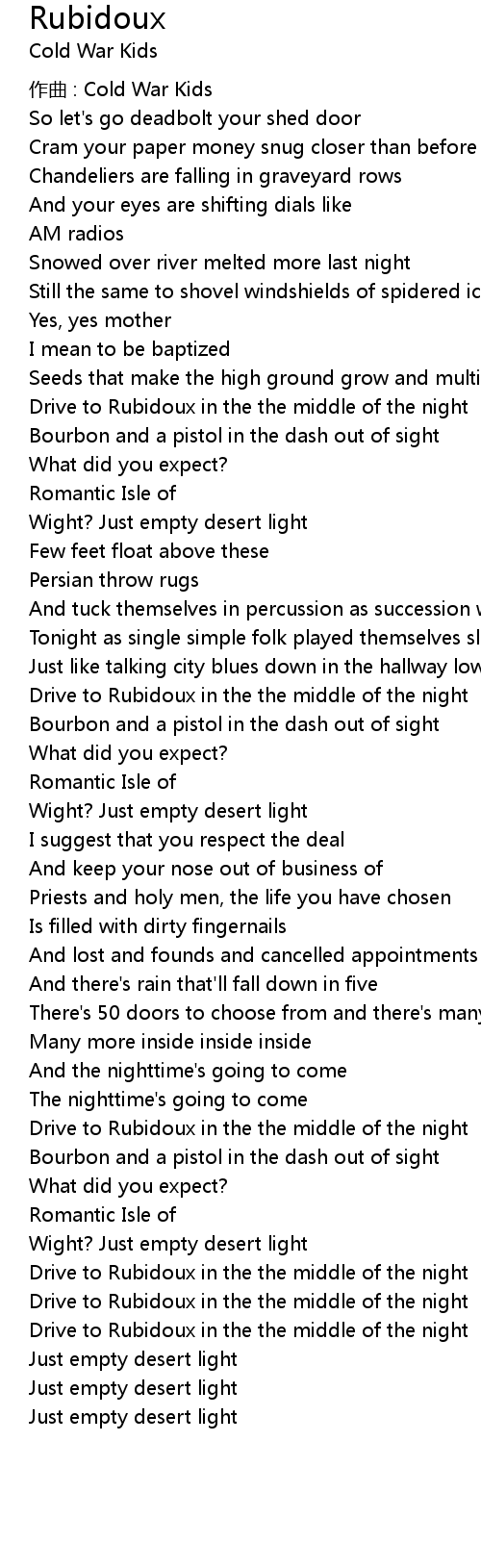 | 作曲 : Cold War Kids | |