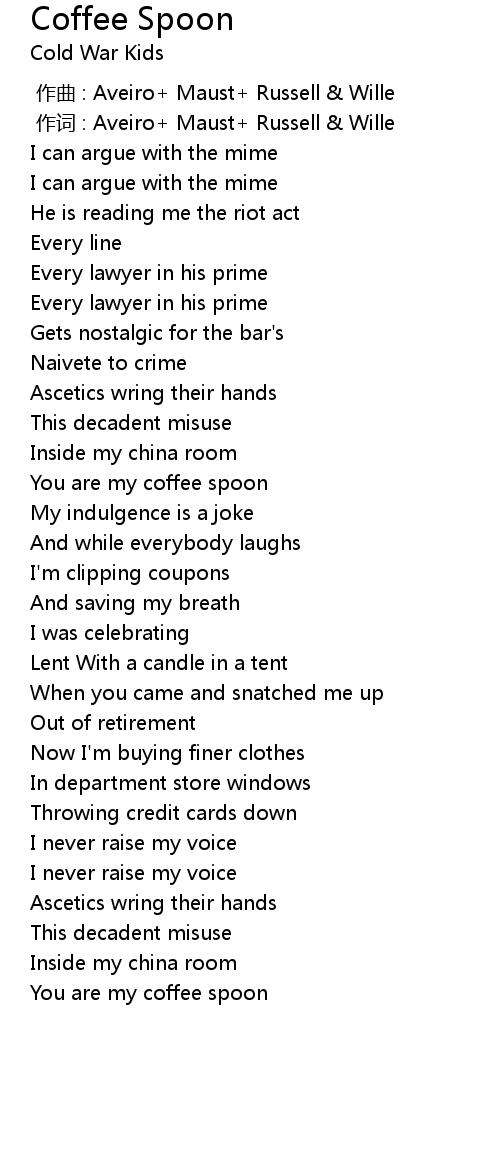 | [01:34.28] | You are my coffee spoon |