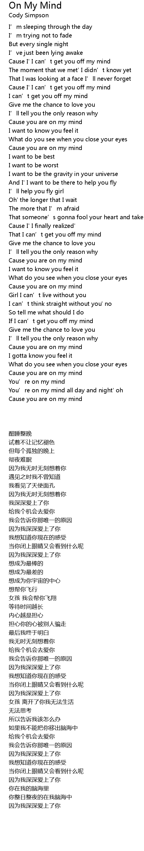 | [02:45.290] | Cause you are on my mind |