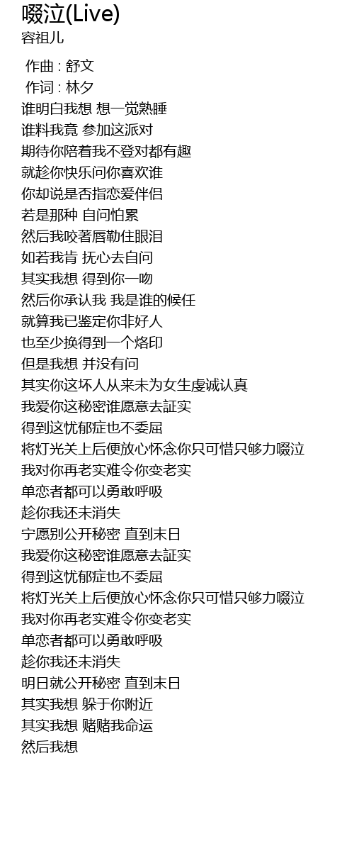| [01:44.65] | 将灯光关上后便放心怀念你只可惜只够力啜泣 |