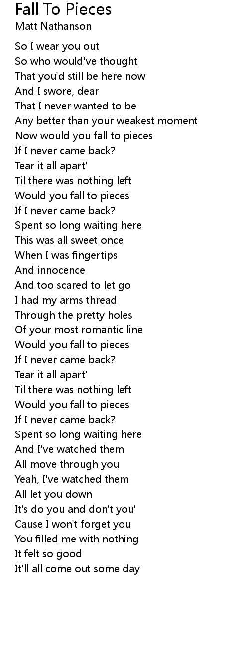 Now would you fall to pieces |