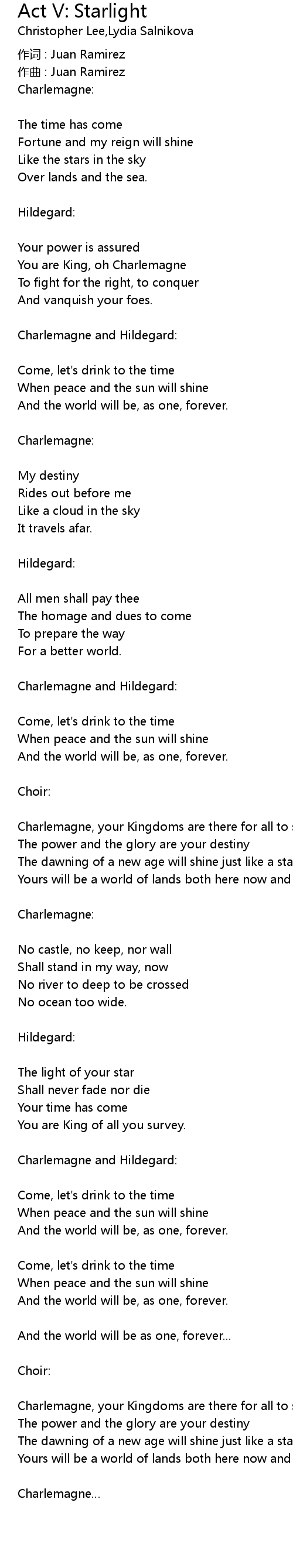 | 歌曲 | Act V: Starlight |