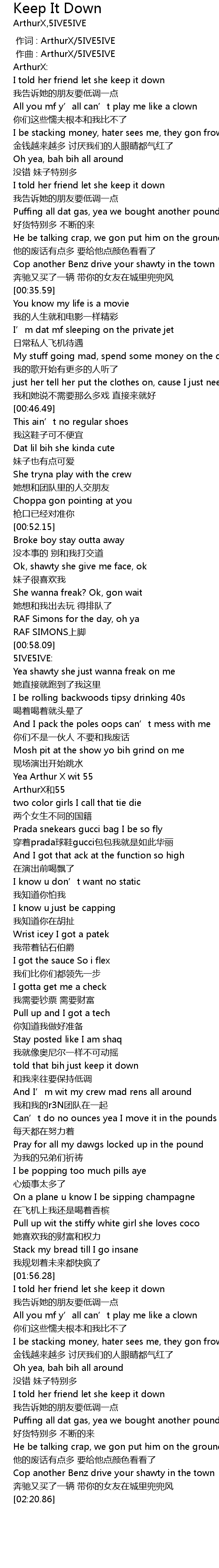 | [01:32.48] | told that bih just keep it down |