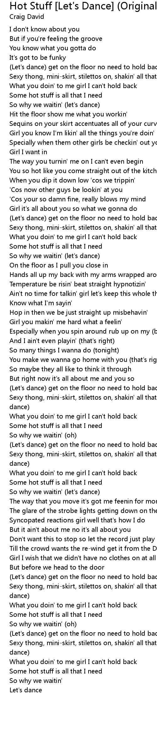 Sexy thong, mini-skirt, stilettos on, shakin' all that (and all that) (let's dance) |