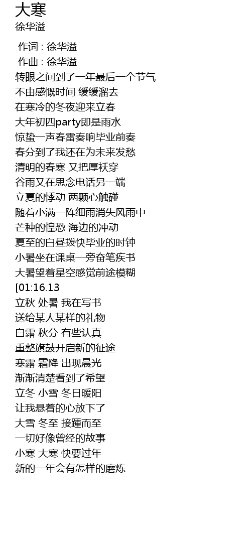 | [00:25.89] | 转眼之间到了一年最后一个节气 |