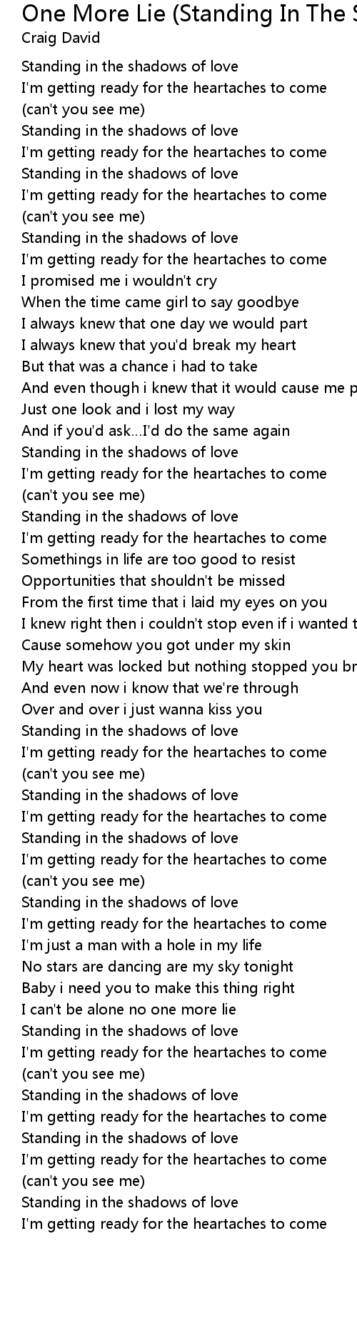 | Standing in the shadows of love | |