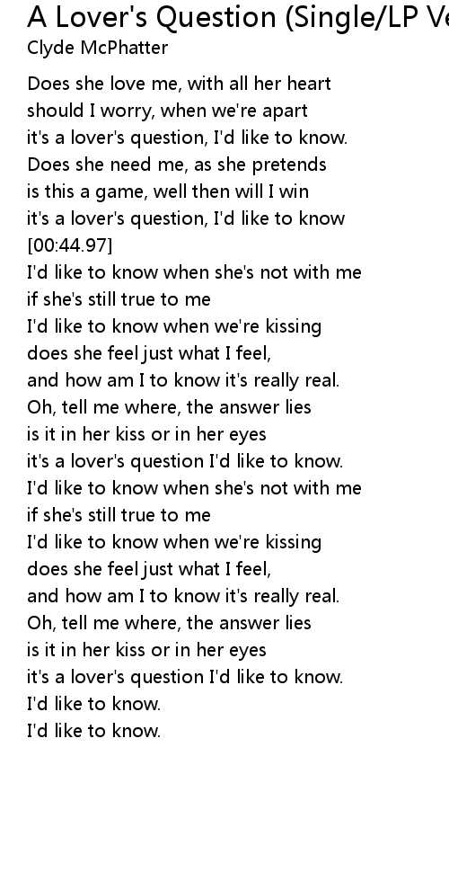 it's a lover's question, I'd like to know |
