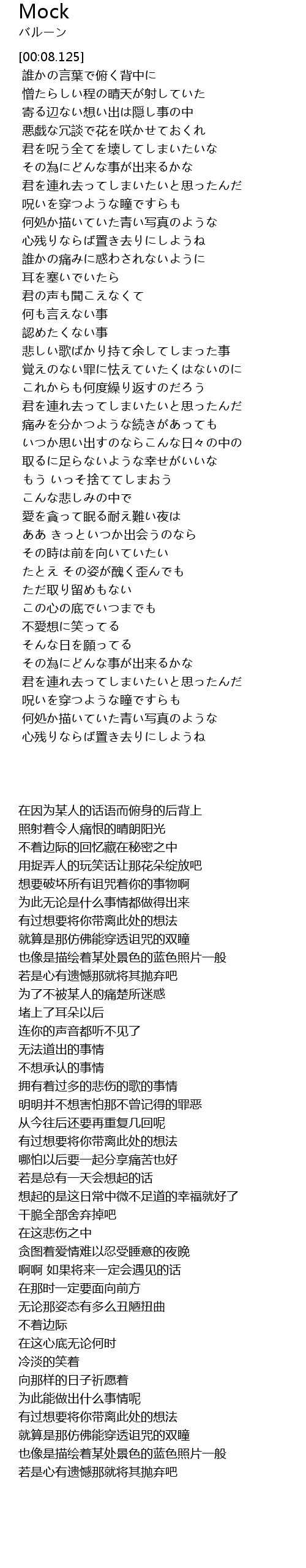 | [00:41.868] | 君を呪う全てを壊してしまいたいな |