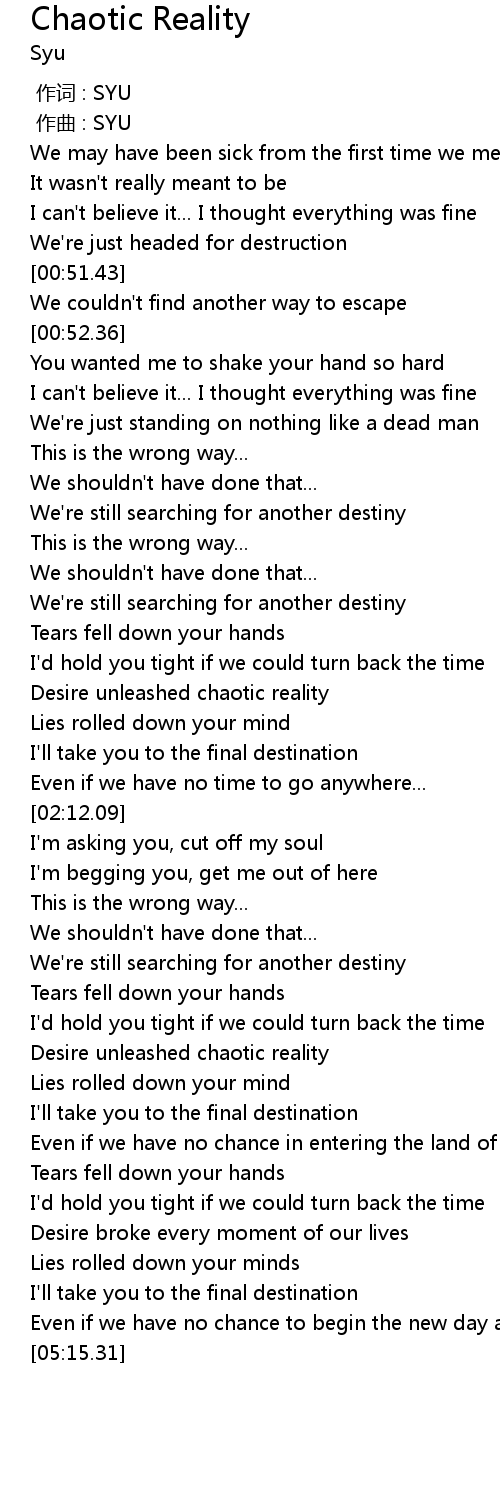 | [00:43.88] | I can' t believe it... I thought everything was fine |