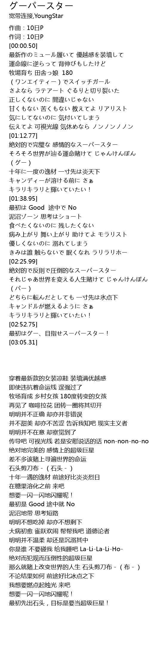 | [03:02.06] | 最初はグー、目指せスーパースター! |