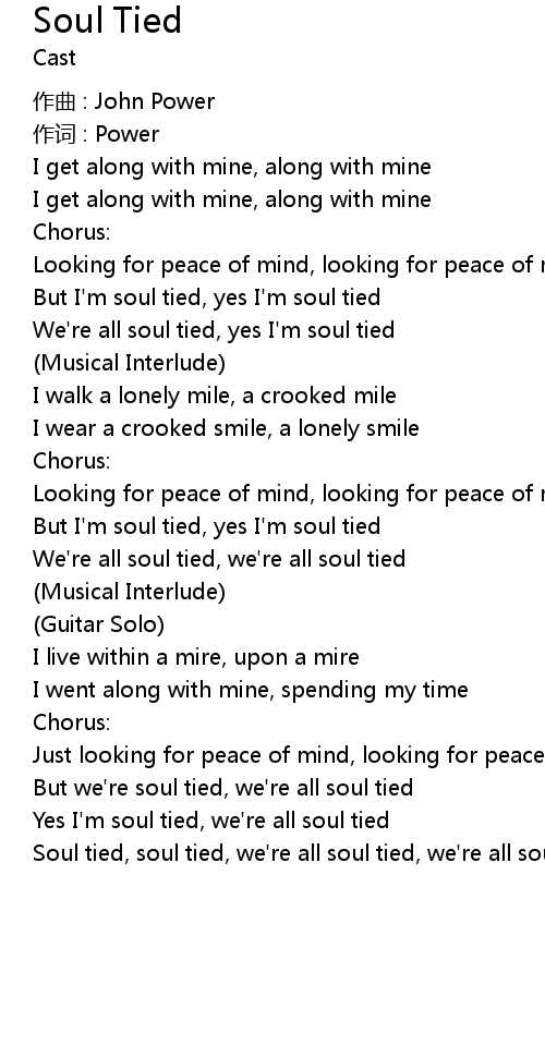 | Soul tied, soul tied, we' re all soul tied, we' re all soul tied |