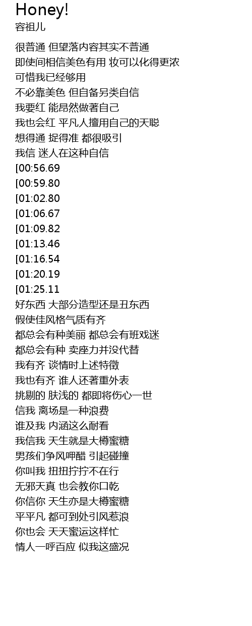 | [02:05.50][00:56.69] | 我信我 天生就是樽蜜糖 |