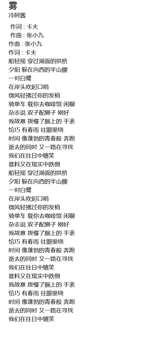 | [03:03.660] | 骑单车 载你去咖啡馆 闲聊 |