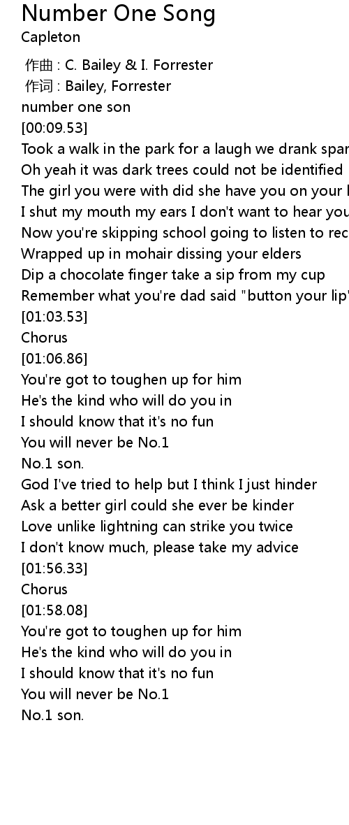 | [01:01.02] | Remember what you're dad said "button your lip" |