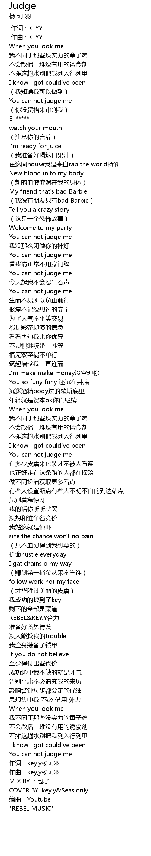 | [00:26.329] | nǐ méi zī gé lái shěn pàn wǒ |