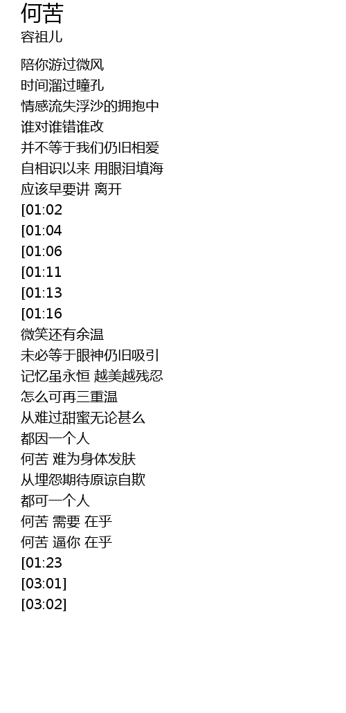 | [02:42] | 何苦 需要 在乎 |