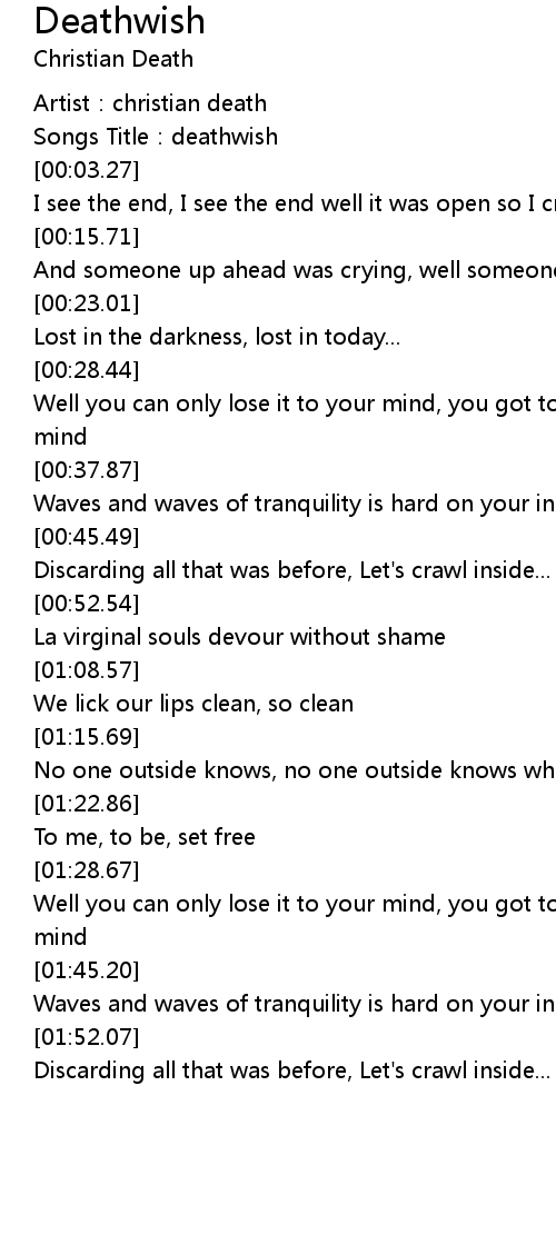 | [00:02.09] | Songs Title: deathwish |