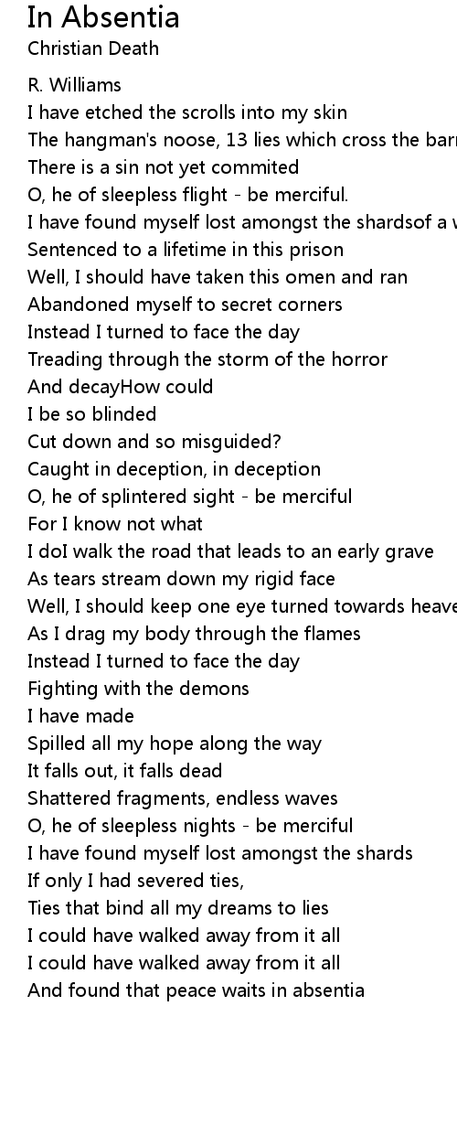 And found that peace waits in absentia |