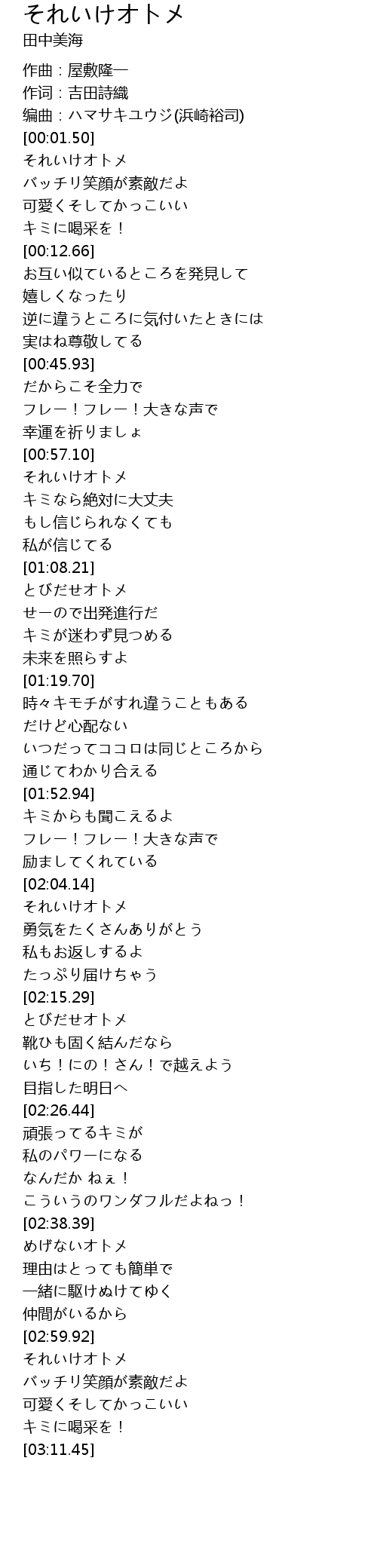 | [00:01.00] | 编曲:ハマサキユウジ(浜崎裕司) |