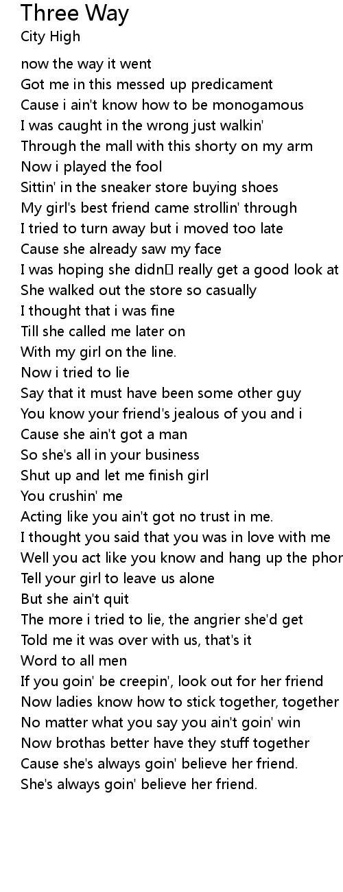 | Cause she's always goin' believe her friend. | |