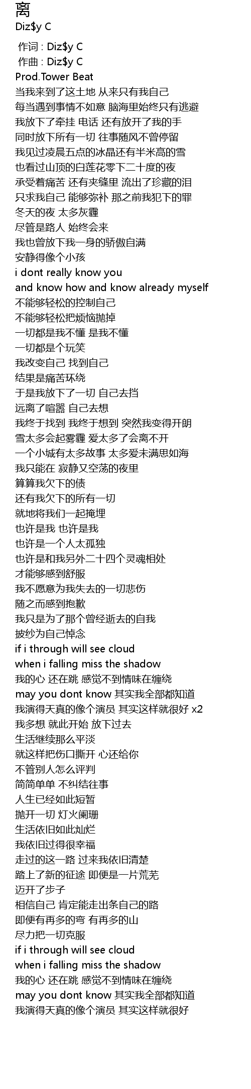 | [00:00.000] | 作词 : Diz$y C |