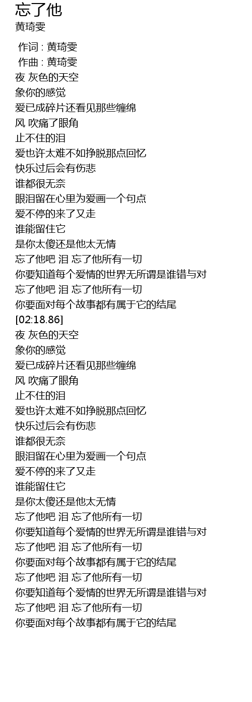 | [01:41.99] | 忘了他吧 泪 忘了他所有一切 |