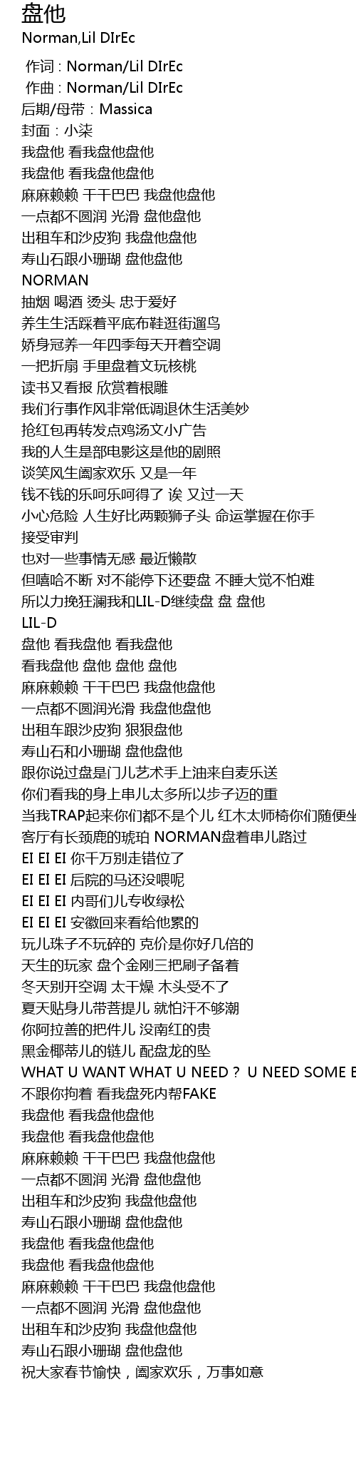 | [00:17.00] | 我盘他 看我盘他盘他 |
