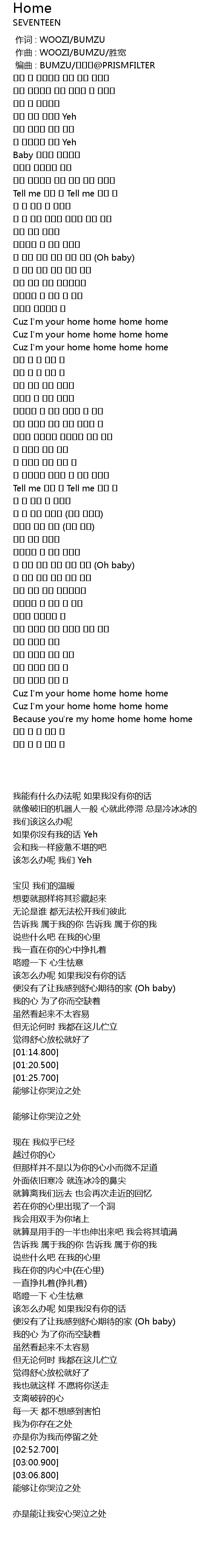 | [03:00.900] | Cuz I' m your home home home home |