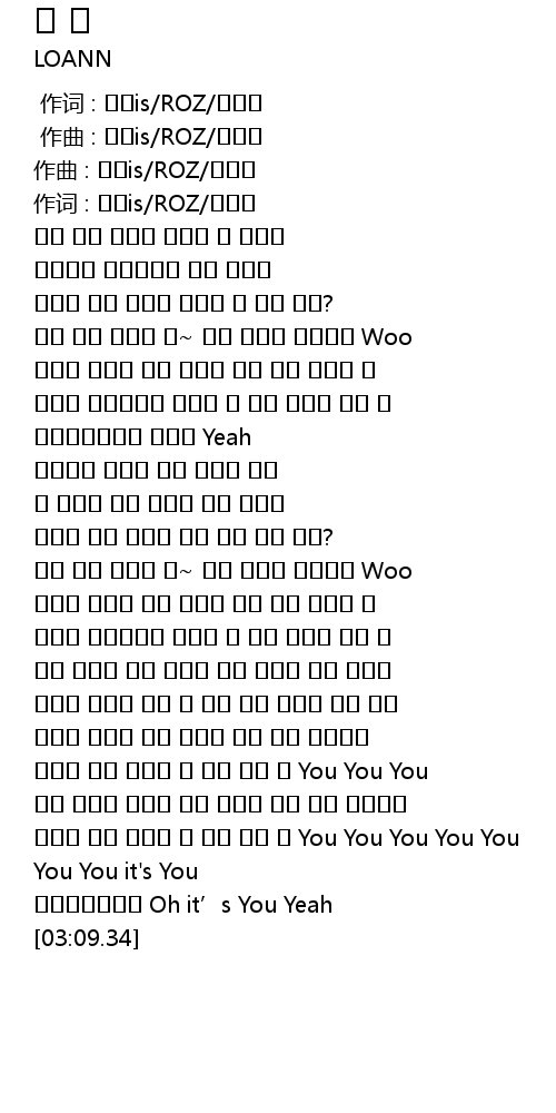 | [02:33.12] | 지금은 나의 곁에서 내 편이 되어 줄 You You You |