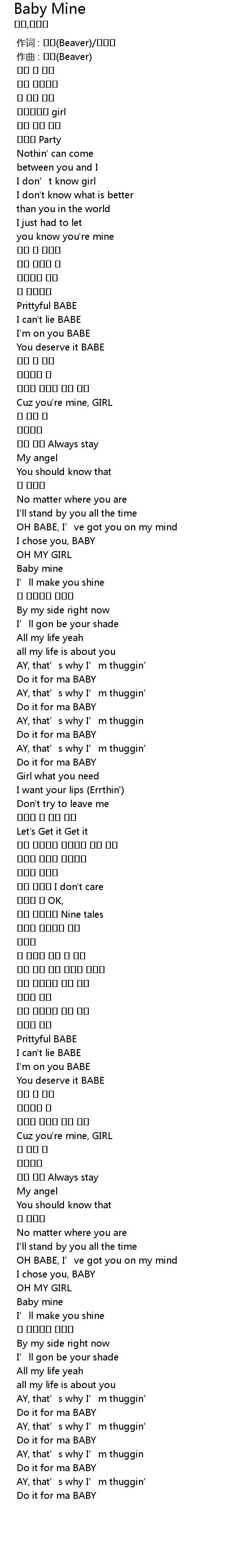 | [00:00.000] | 作词 : 비버(Beaver)/헝치만 |