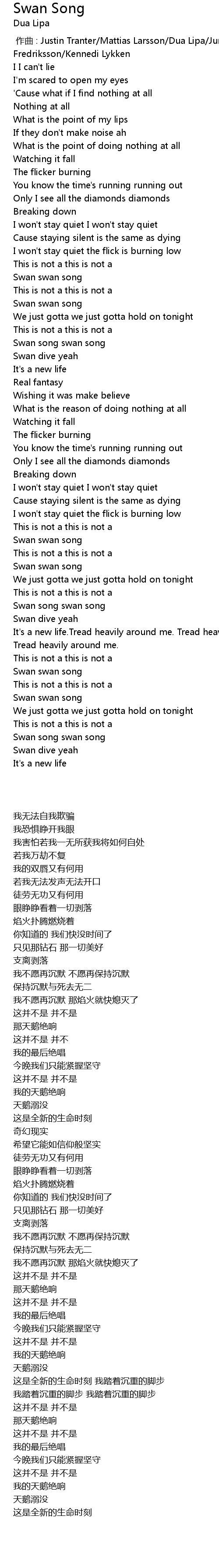 | [00:00.000] | zuo qu : Justin Tranter Mattias Larsson Dua Lipa Junkie XL Robin Fredriksson Kennedi Lykken |