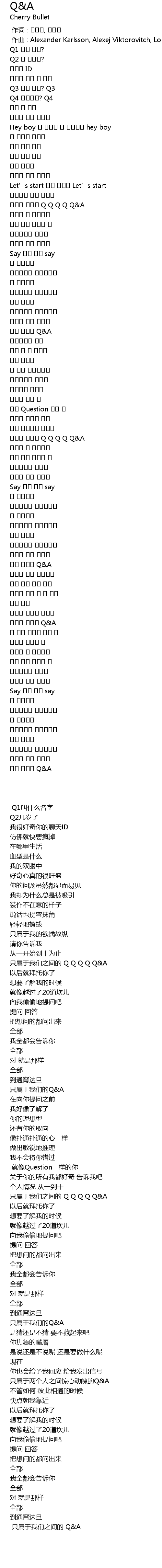 | [00:38.83] | 只属于我们之间的 Q Q Q Q Q&A |