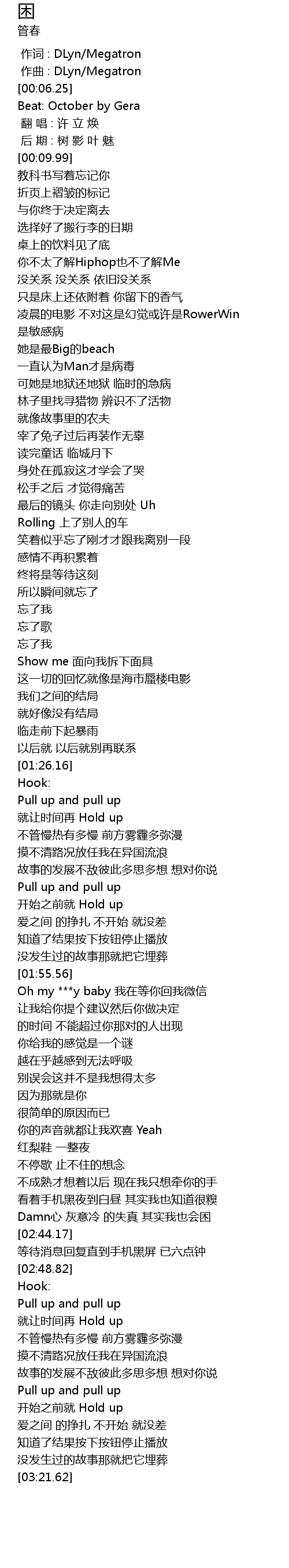 | [00:00.000] | 作词 : DLyn/Megatron |