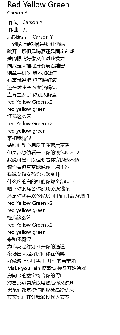 | [01:40.950] | red Yellow Green x2 |