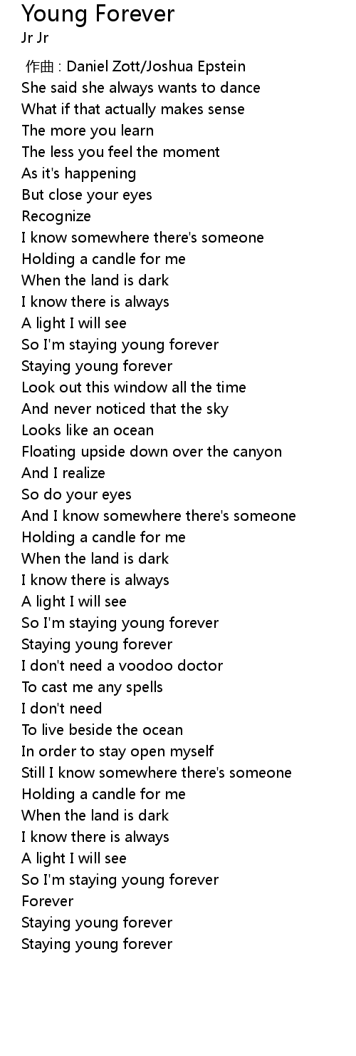 | [02:20.96] | Staying young forever |
