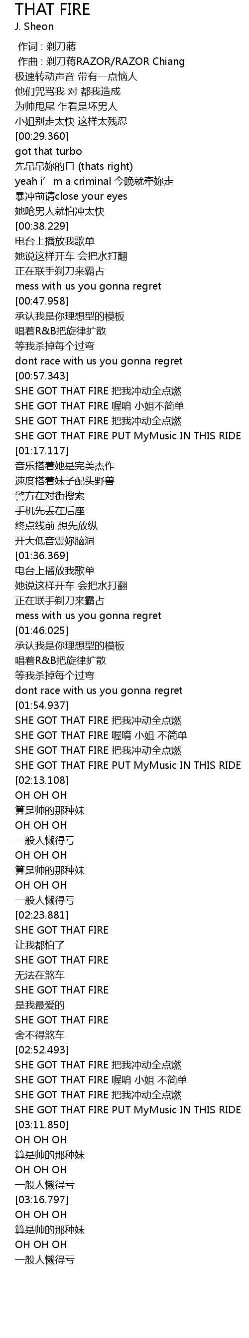 | [02:57.958] | SHE GOT THAT FIRE 喔唷 小姐 不简单 |