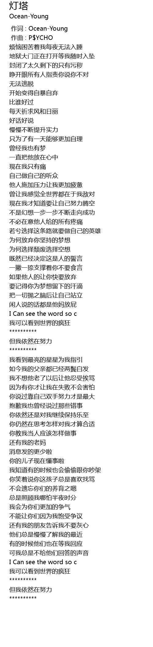 | [00:00.000] | 作词 : Ocean-Young |