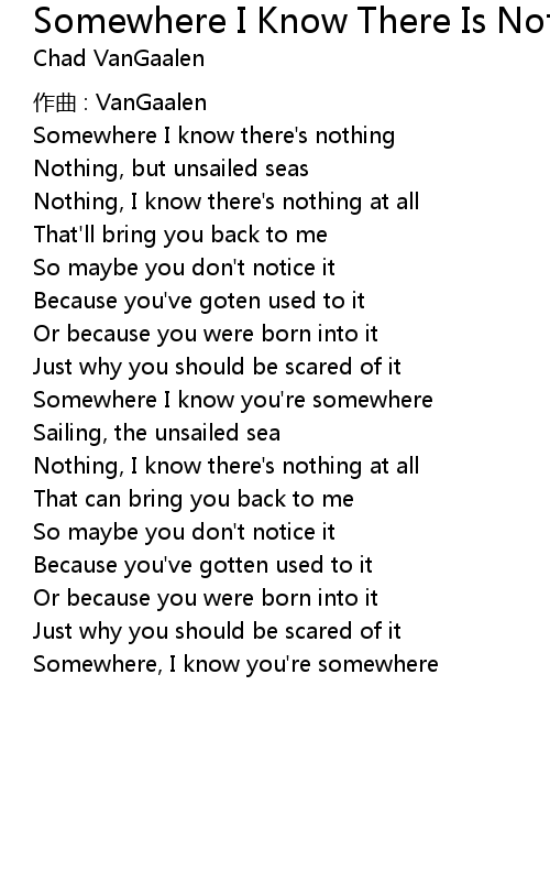 | 歌曲 | Somewhere I Know There Is Nothing |