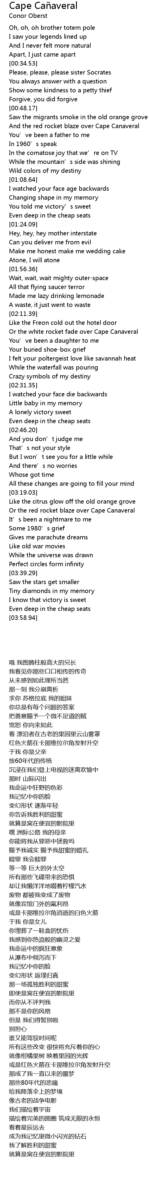 | [02:15.31] | Or the white rocket fade over Cape Canaveral |